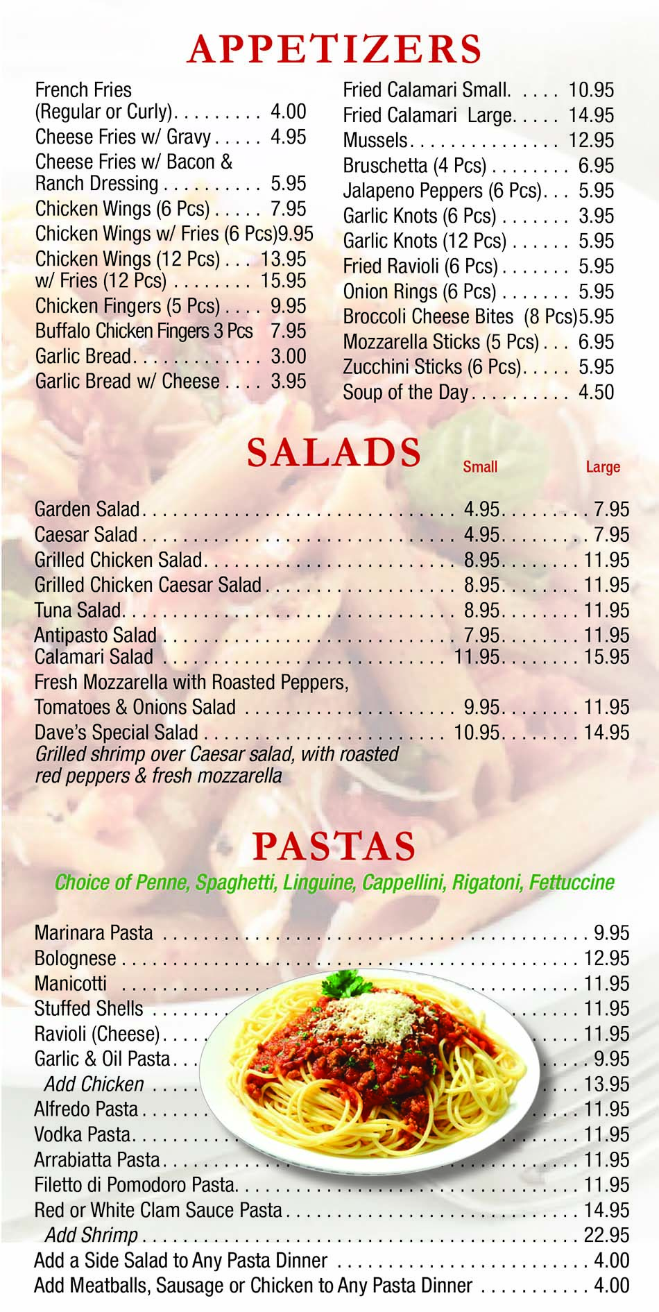 appetizers/salads/pastas